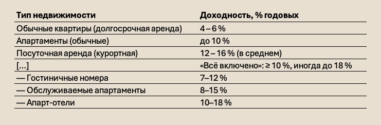 - Апарт-отели — 10–18 % годовых .